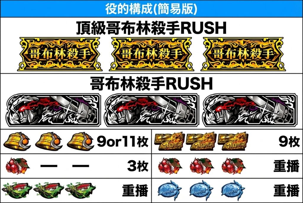 - 稀有小役成立時, 將改為進行「Goblin Slayer BONUS」抽選